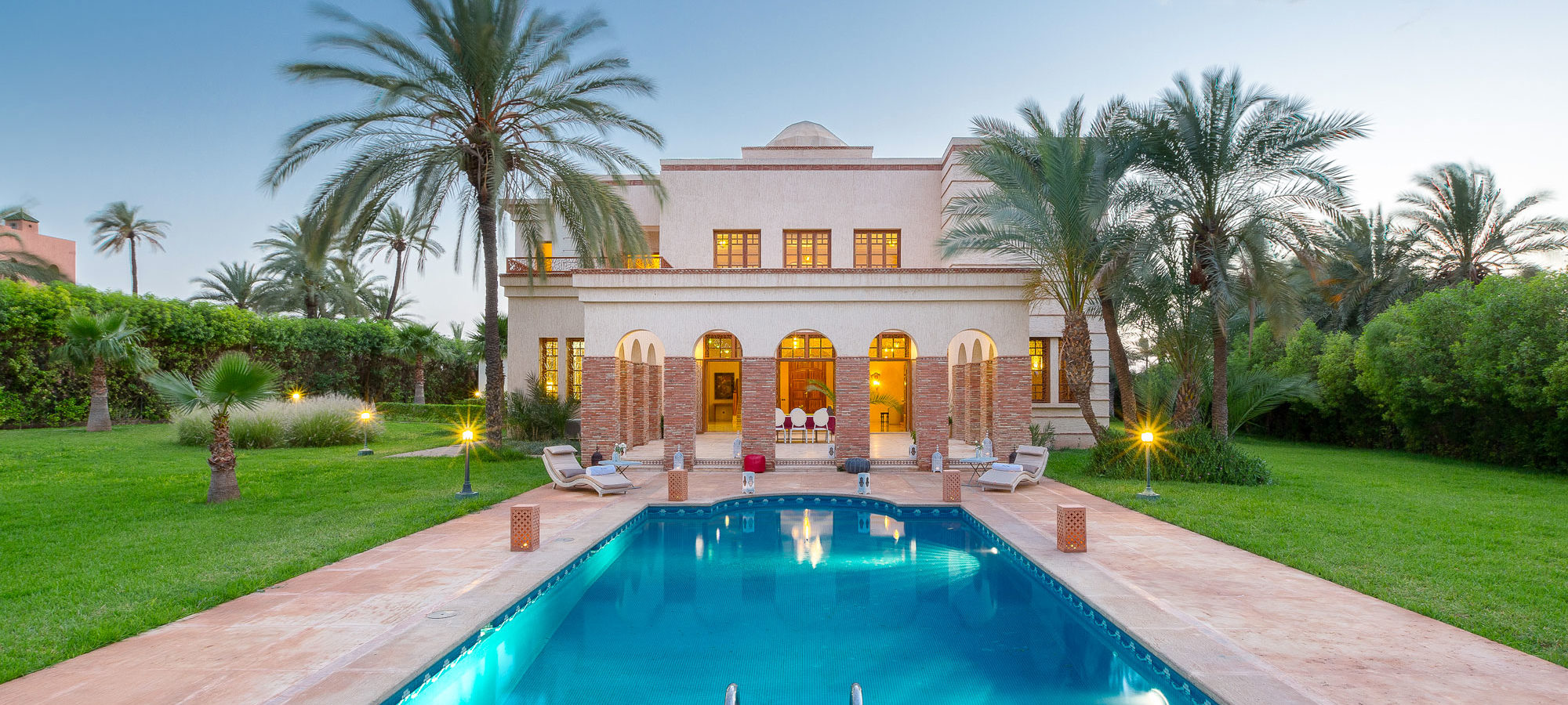 En plein coeur de la Palmeraie, c’est au sein de la Villa Baccara que les festivités s’animent. Avec une superficie de 3500M2, c’est splendide Villa de Maître peut aisément accueillir plus de 200 invités dans son immense parc privé.